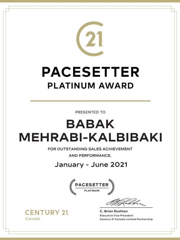 Certificate of appreciation in 2021 from the Century 21 Heritage Group Ltd.brokerage